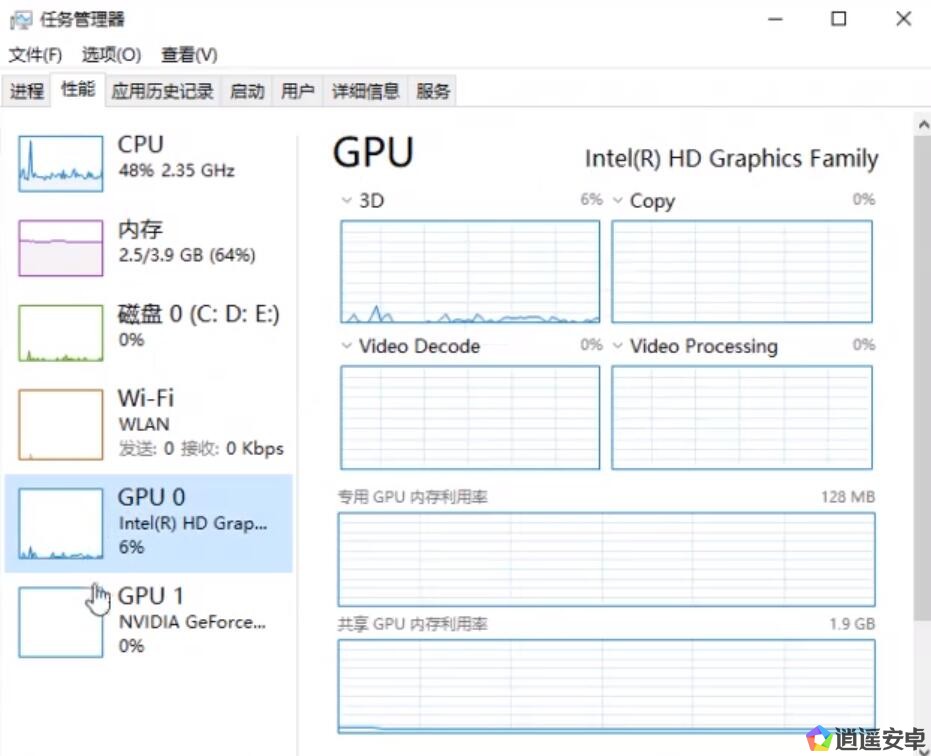 模擬器啟動(dòng)隨便啟動(dòng)一個(gè)游戲 打開 任務(wù)管理器 性能 里看看 是集成顯卡工作還是獨(dú)立四.硬件設(shè)置