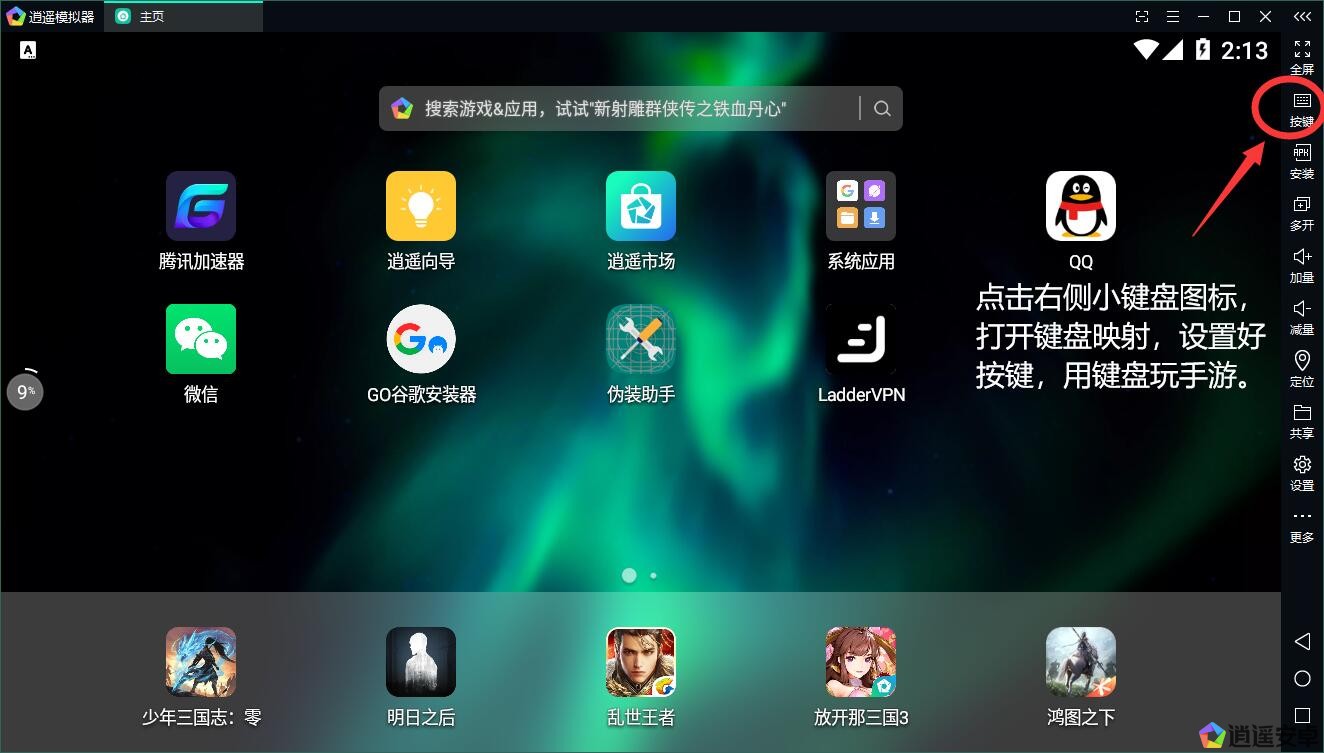 把觀察鍵拖拽到游戲任意界面,按下按鍵后移動(dòng)鼠標(biāo),可以使角色在不動(dòng)的同時(shí)查看其他方位的情況。