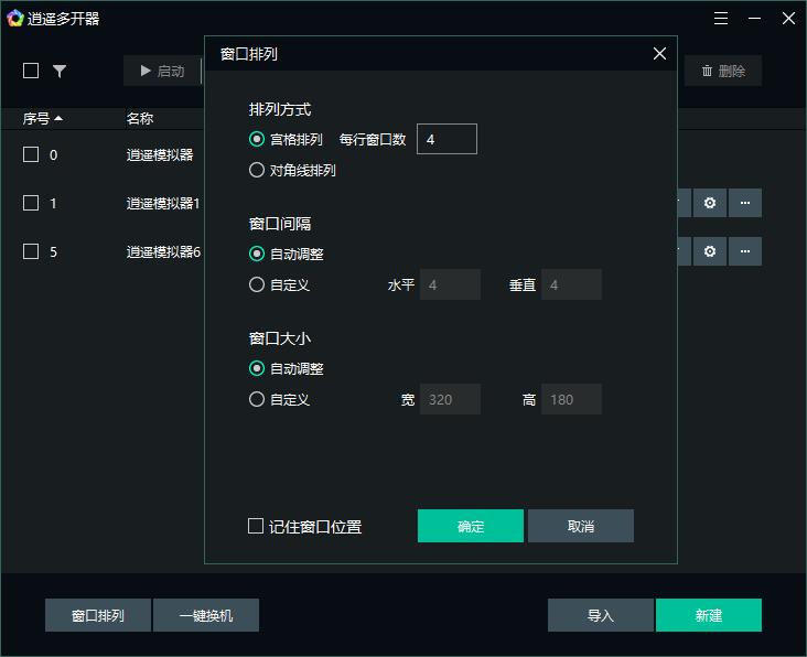 窗口排列功能 最近修改日期:2024-2-21 本文主要介紹逍遙多開器中的窗口排列功能操作 窗口排列功能 打開多開器軟件, 點擊窗口排列按鈕,可以對窗口進行以下調整排列方式: 排列方式:宮格排列、對角線排列 窗口間隔:自動調整、自定義調整 窗口大小:自動調整、自定義調整