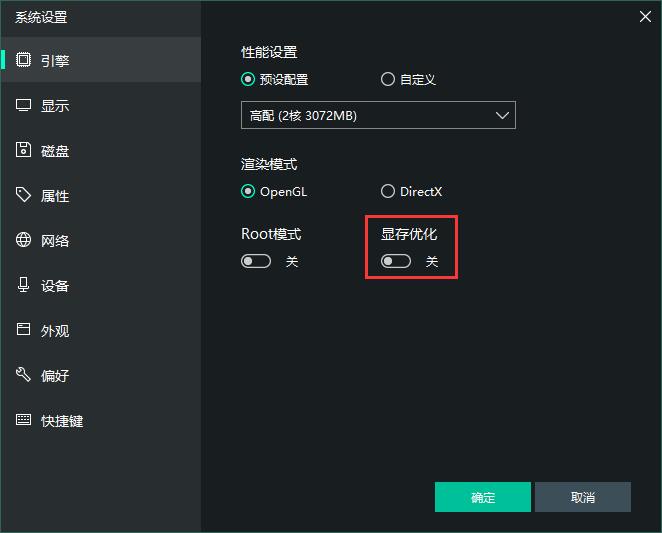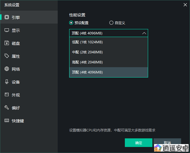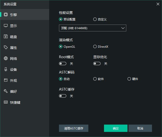 按鈕可彈出以下界面:一、引擎設(shè)置–性能設(shè)置/CPU/內(nèi)存設(shè)置: