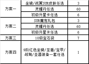 累計(jì)折后充值200元(實(shí)付):UR級(jí)皮膚任選禮包*1、坐騎進(jìn)階石*588、戰(zhàn)翼進(jìn)階石*588、魂兵進(jìn)階石*588