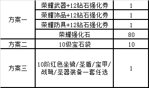 累計(jì)折后充值15000元(實(shí)付):UUR級(jí)元尊自選禮包5*5、12級(jí)寶石袋*5、榮耀防具+15鉆石強(qiáng)化券*1、榮耀飾品+15鉆石強(qiáng)化券*1、榮耀武器+15鉆石強(qiáng)化券*1