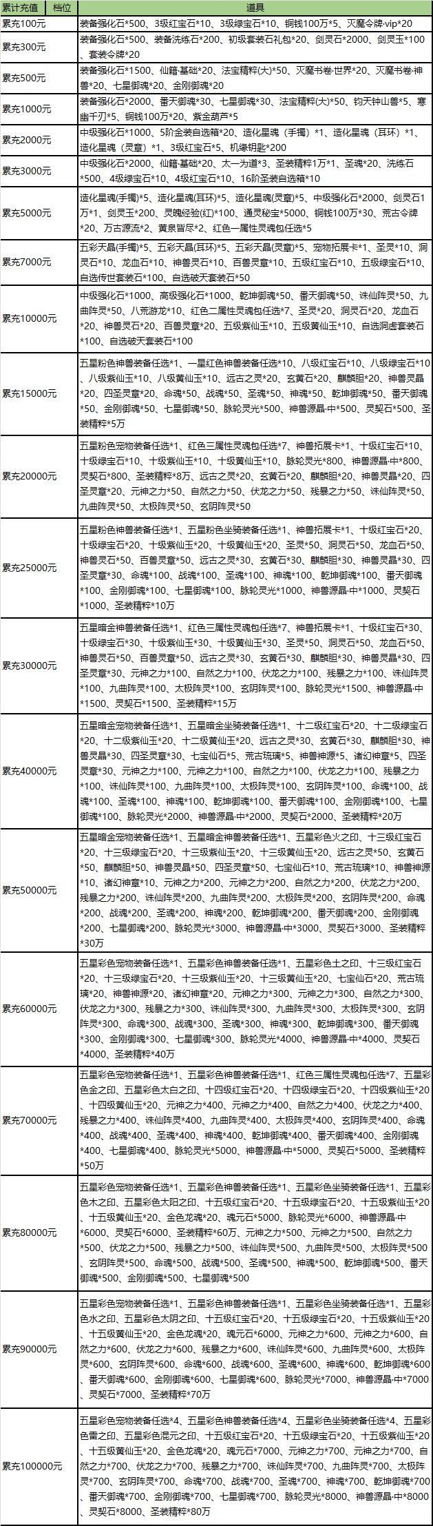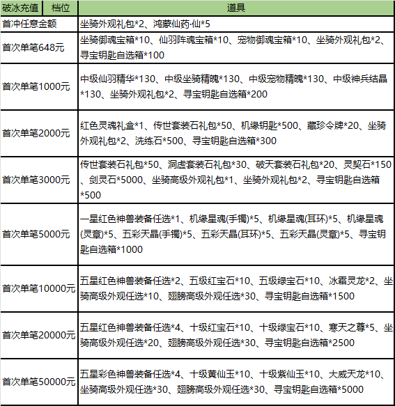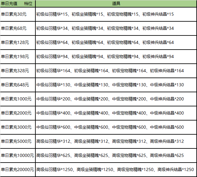 1、每筆充值領取對應檔位禮包,每日多筆充值可領取多個對應禮包