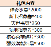 禮包內容:核心英雄碎片*50;紅色寶石*1;特級寶石結晶*50 活動規則
