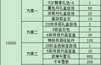 例:比如玩家在7.1實(shí)付3000元,可以獲得3000元檔位的禮包碼一個(gè),玩家在游戲內(nèi)使用該禮包碼后可以在游戲內(nèi)自行選擇所需方案。