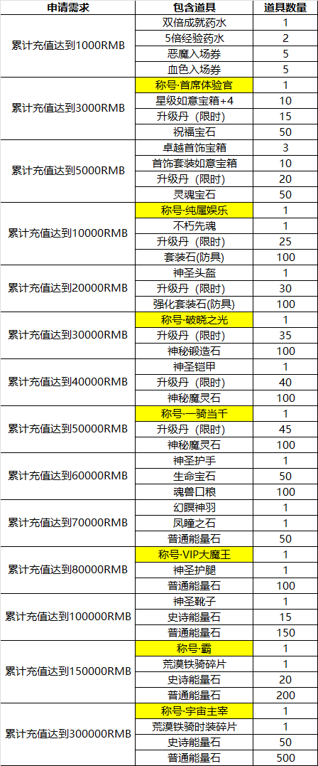 若玩家單日充值的額度達到甚至超過16w,可找客服單獨申請其它的道具組合方案