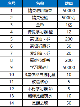 冠名禮包:5系5星精靈自選包*3、高級(jí)抽卡券*100、祈愿券*100