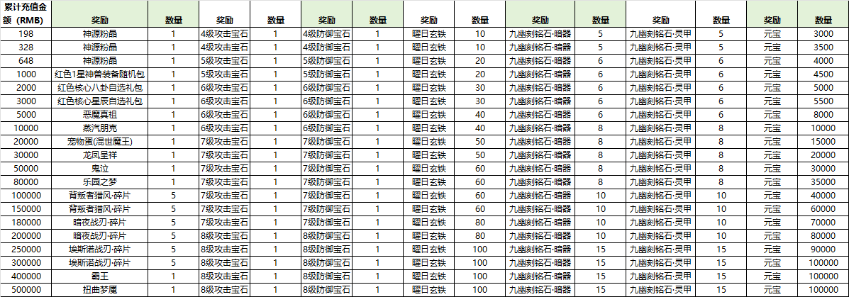 1、角色單日累計充值到 對應金額即可領取最高檔位獎勵,1-3個工作日發放。