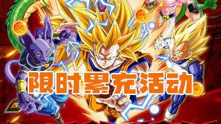 累計充值500元(折后):超3悟天克斯*1(紅色UR),金幣1000w,龍晶寶箱·中*3