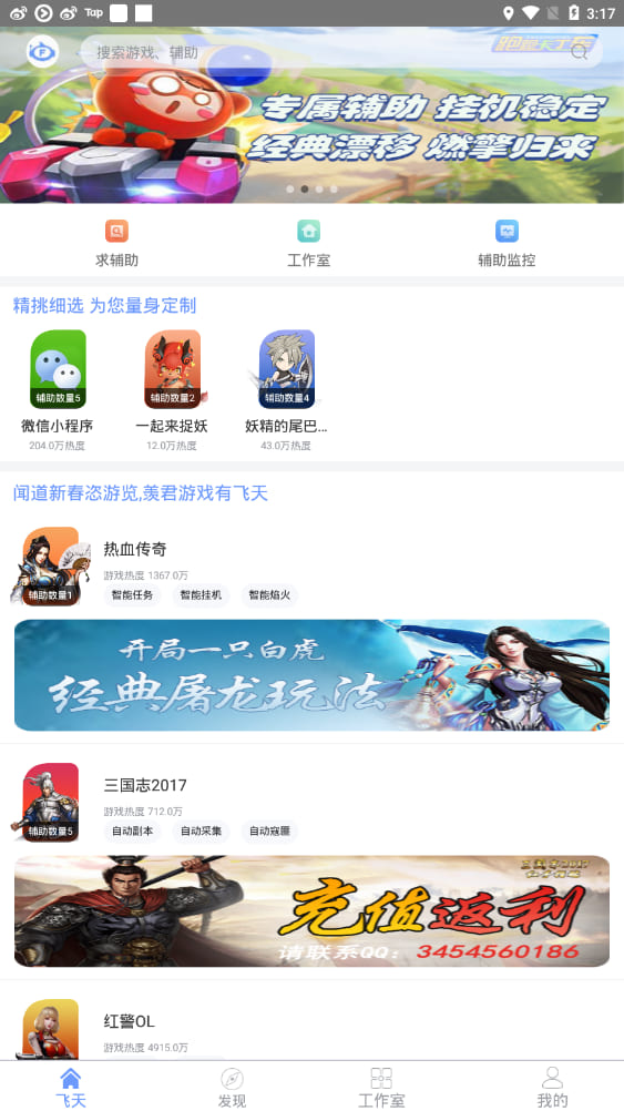 飛天助手是一款基于手機(jī)游戲興趣愛好的永久免費(fèi)的手游輔助軟件,為市面上COC、王者榮耀、天龍八部、夢(mèng)幻西游、問道、微信小游戲等諸多熱門、經(jīng)典、新鮮手機(jī)游戲提供優(yōu)質(zhì)免費(fèi)手游輔助腳本資源,這里為大家提供飛天助手下載,需要的玩家可在本頁(yè)下載飛天助手官網(wǎng),體驗(yàn)海量?jī)?yōu)質(zhì)免費(fèi)輔助,所有手游輔助均可永久免費(fèi)使用!